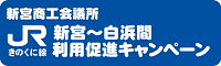 JRきのくに線「新宮〜白浜間」の利用促進を目的として、当商工会議所会員事業所の経営者とご家族や従業員の皆様の出張や旅行で、JRきのくに線「新宮〜白浜間」をご利用頂いた場合にポイントを付与、20ポイント毎に新宮商工会議所共通商品券500円分をプレゼントします。